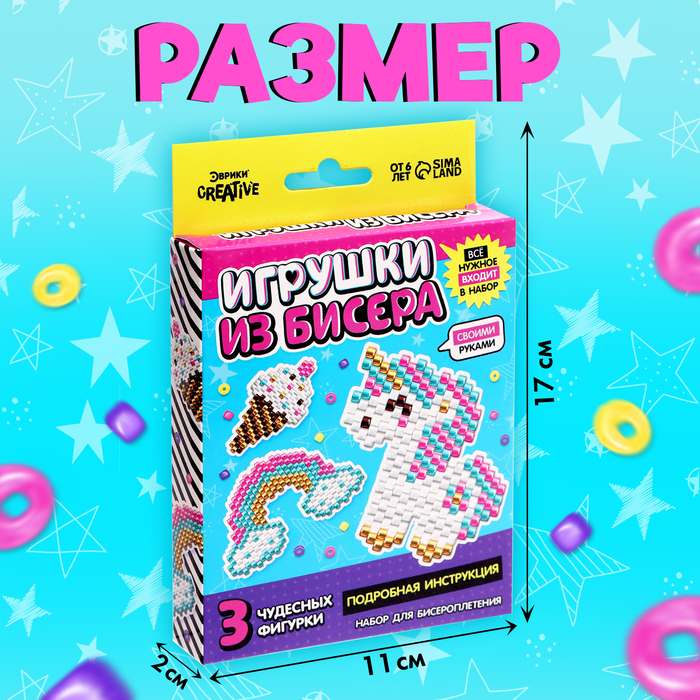 Набор бисера для творчества и рукоделия «Игрушки из бисера. Единорог», плетение своими руками, 3 фигурки — Характеристики