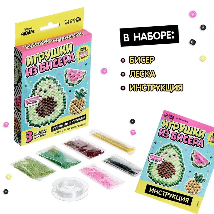 Набор бисера для творчества и рукоделия «Игрушки из бисера: Фрукты», плетение своими руками, 3 фигурки — Характеристики
