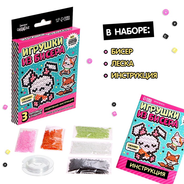 Набор бисера для творчества и рукоделия «Игрушки из бисера: Питомцы», плетение своими руками, 3 фигурки — Характеристики