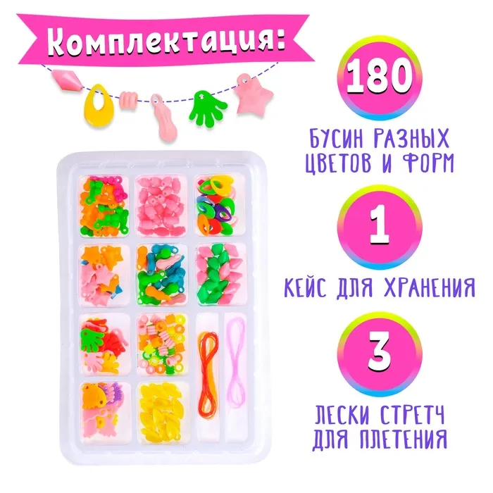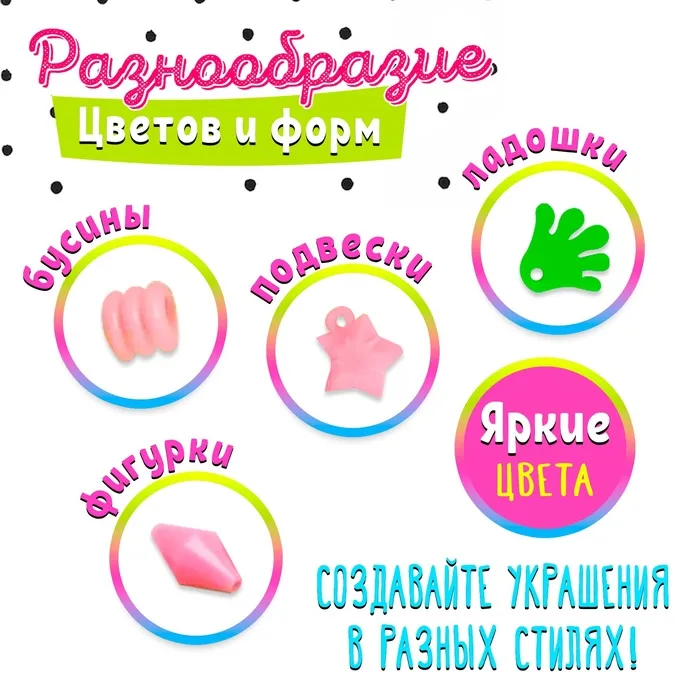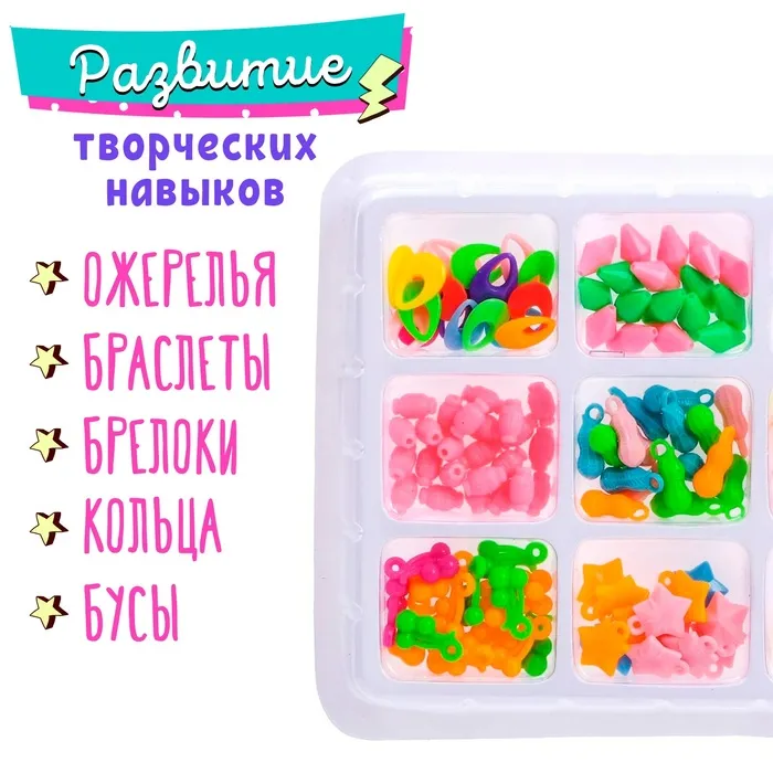В кейсе есть всё необходимое для творчества: 10 видов элементов, из которых можно делать аксессуары в разных стилях.
