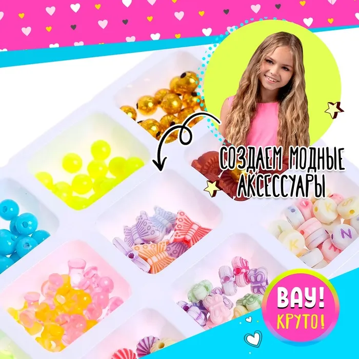В кейсе есть всё необходимое для творчества: 13 видов элементов, из которых можно делать аксессуары в разных стилях.