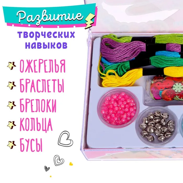 Необычный игровой набор позволит дополнить волшебный образ милыми кольцами, бусами и браслетами.