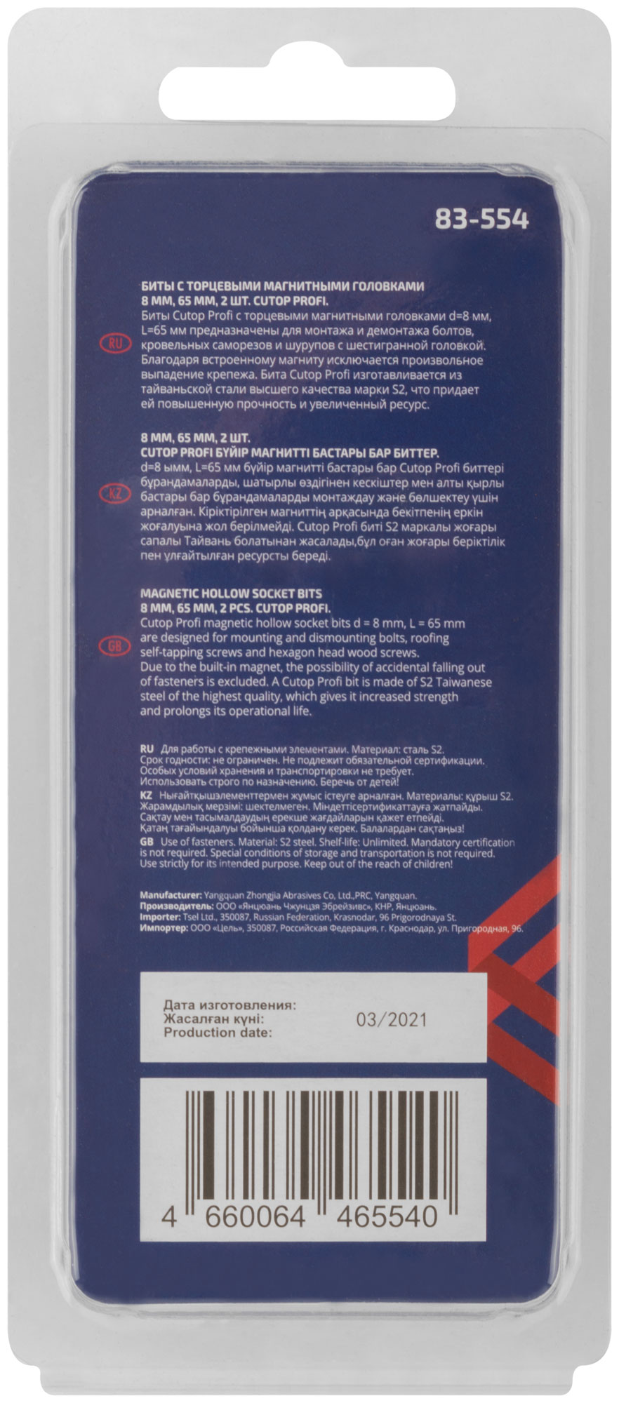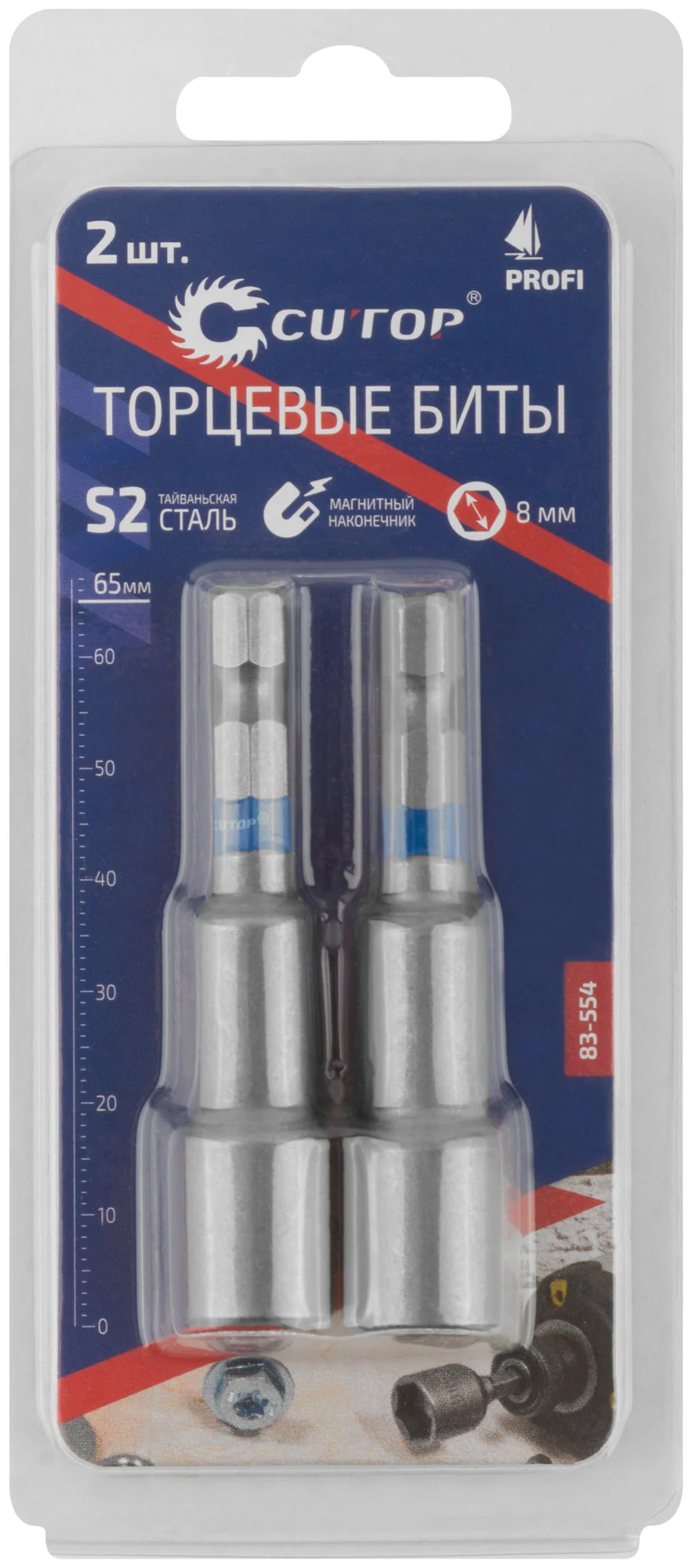 Набор бит с торцевыми магнитными головками 8 мм, 2 шт., CUTOP Profi, 65 мм