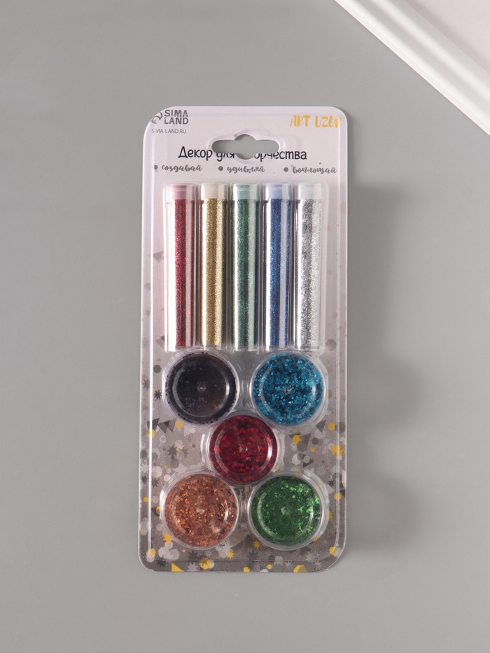 Глиттер в баночке с пробкой «Яркие звёздочки», (набор 6 шт.) 6 г=1 баночка, 13×5 см