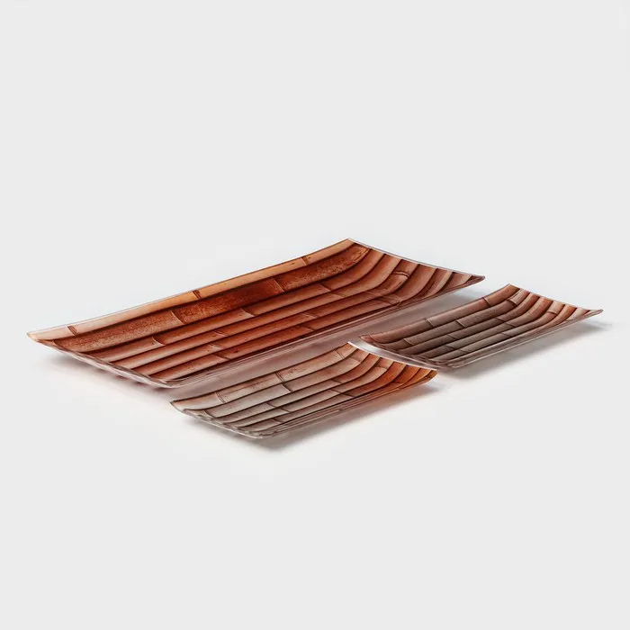Набор блюд Доляна «Бамбук золотой», 35.5×14×2 см, 18.5×8.5×1.5 см, стекло, коричневый — Характеристики