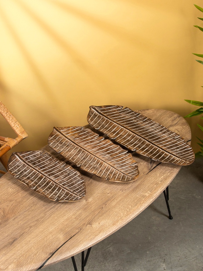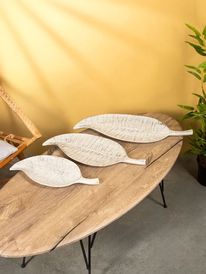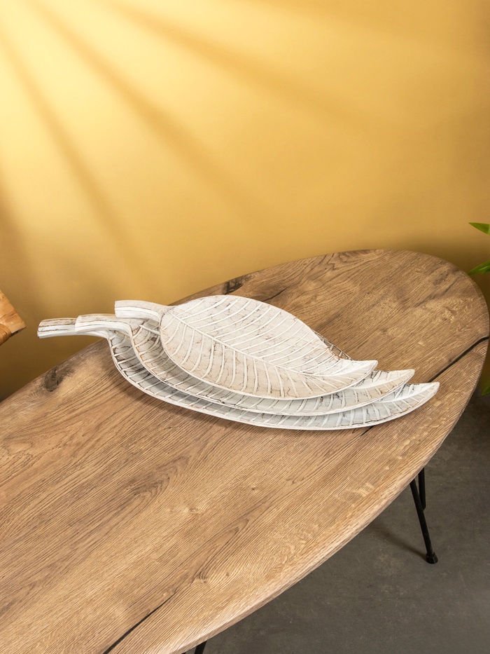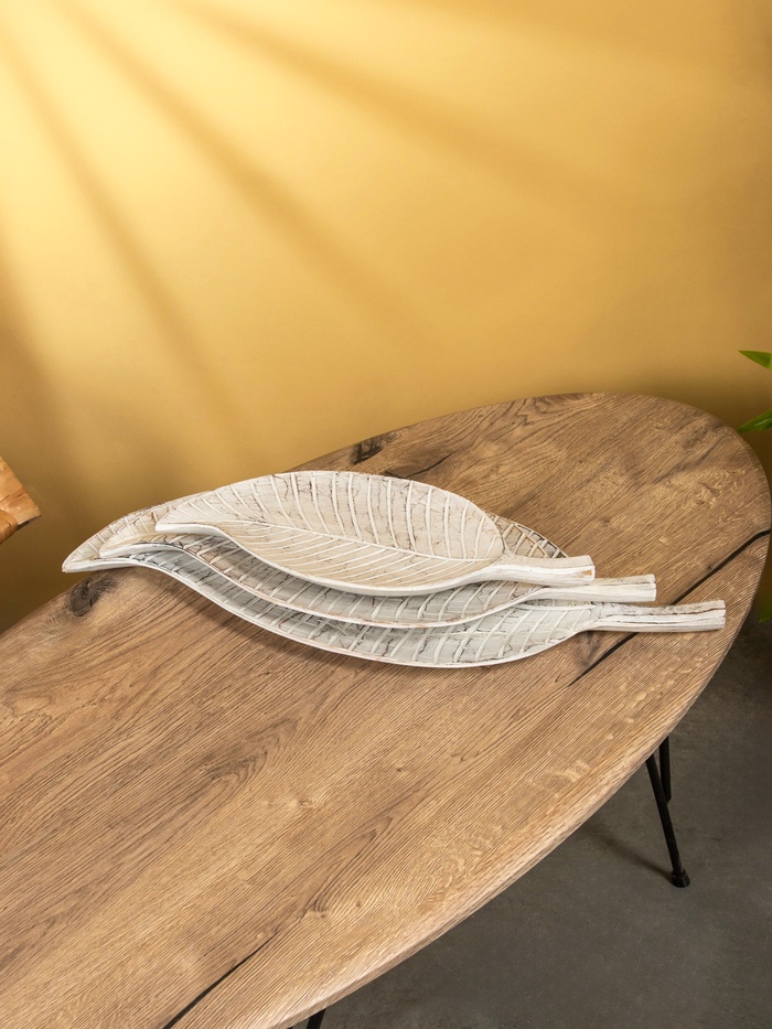 Набор блюд «Листья тропические», 60 см, 50 см, 40 см, дерево, белый — Характеристики