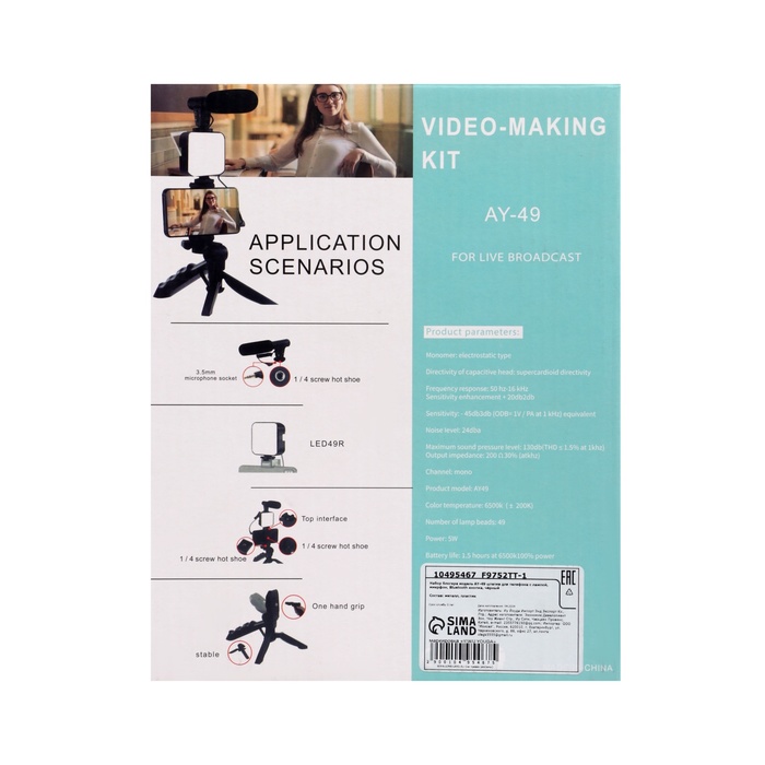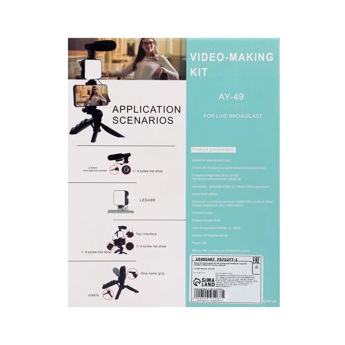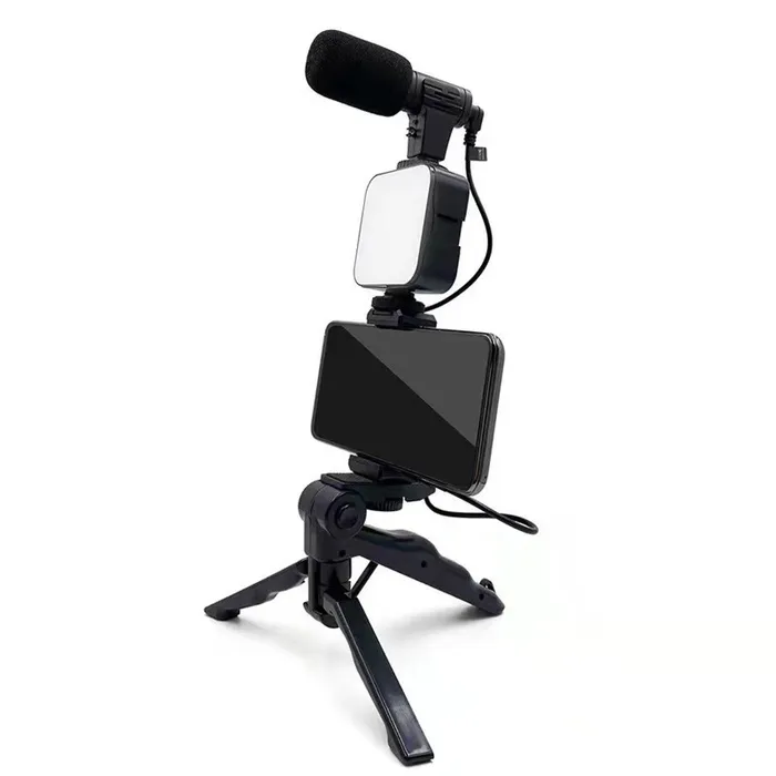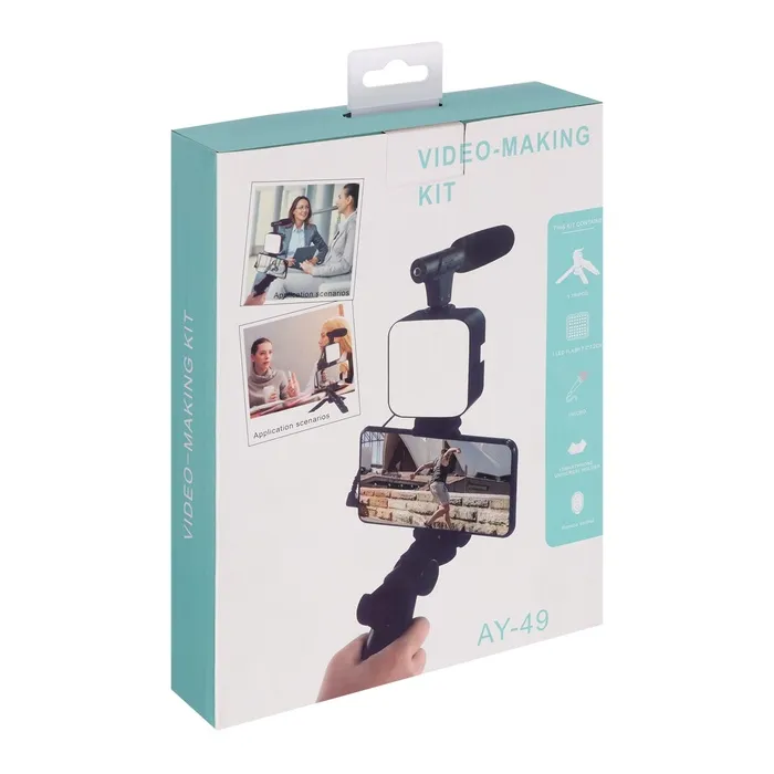 Набор блогера AY-49, штатив для телефона с лампой, микрофон, Bluetooth кнопка, чёрный — Характеристики
