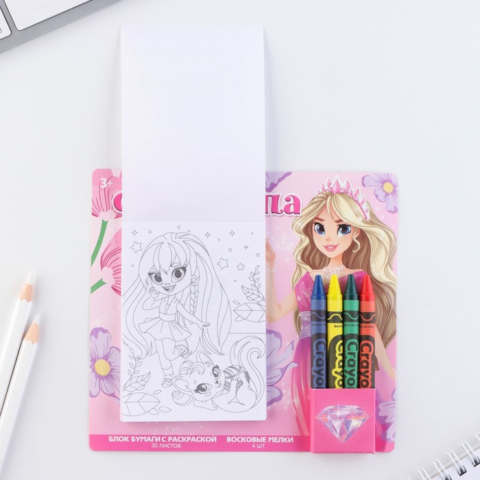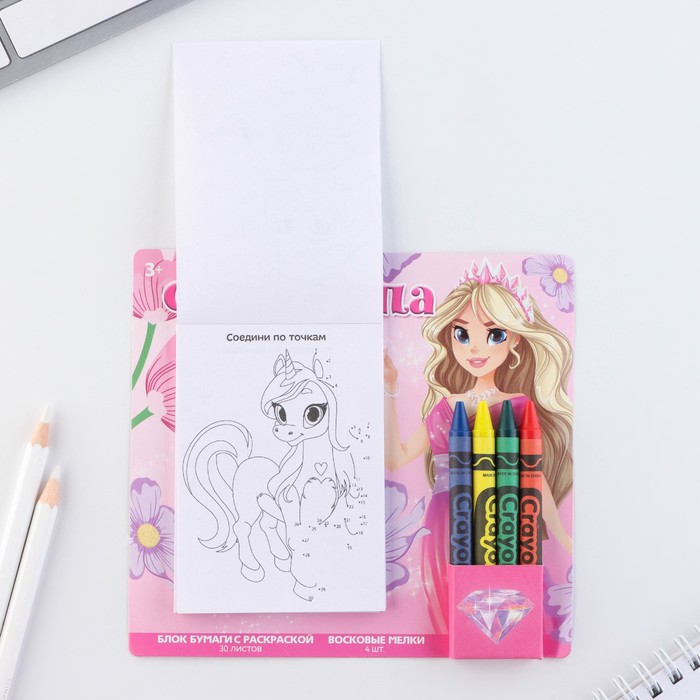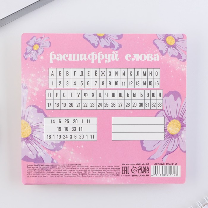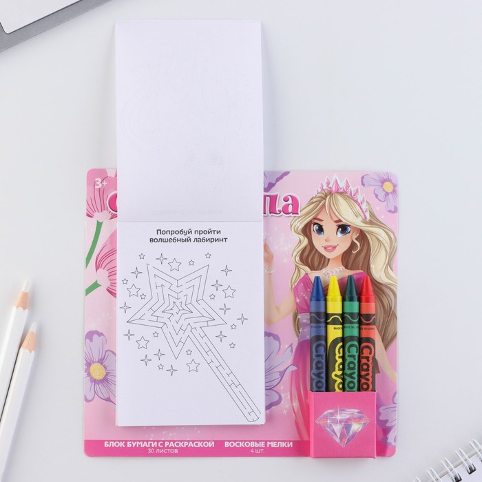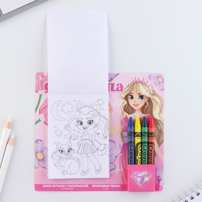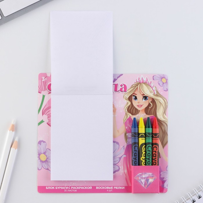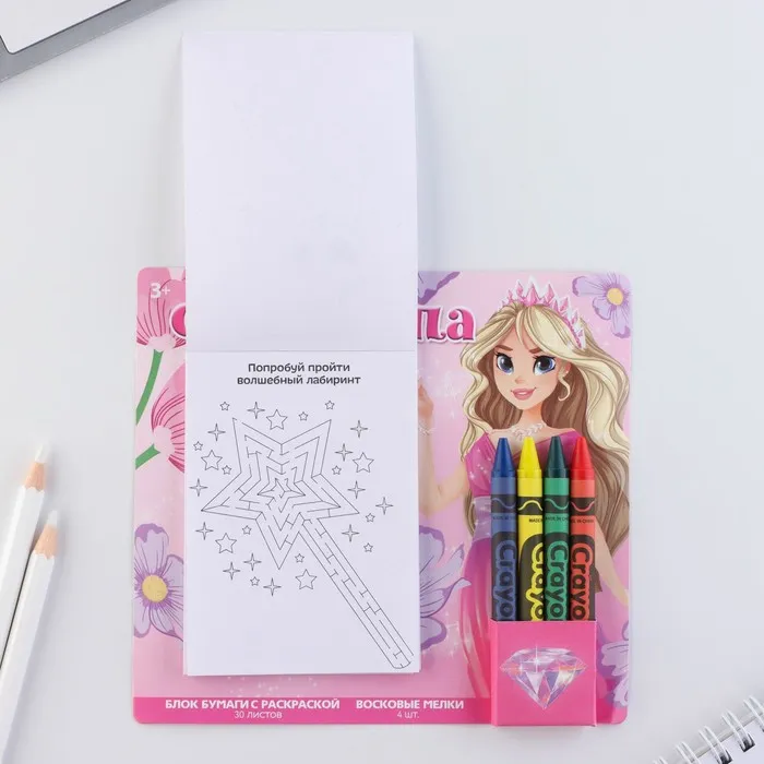 Набор: блок листов с раскраской и восковые мелки «С 8 марта» — Характеристики