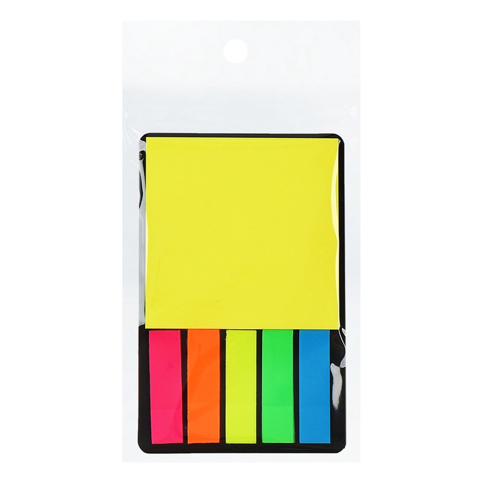 Набор Блок-закладки с липким краем пластик 20л*5 цветов флуор, 45*12мм, блок 30л, 76*76 мм 1053067 — Характеристики