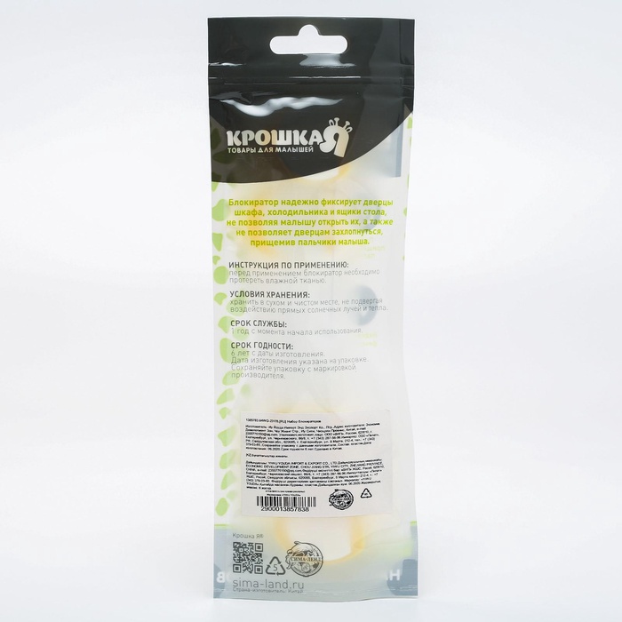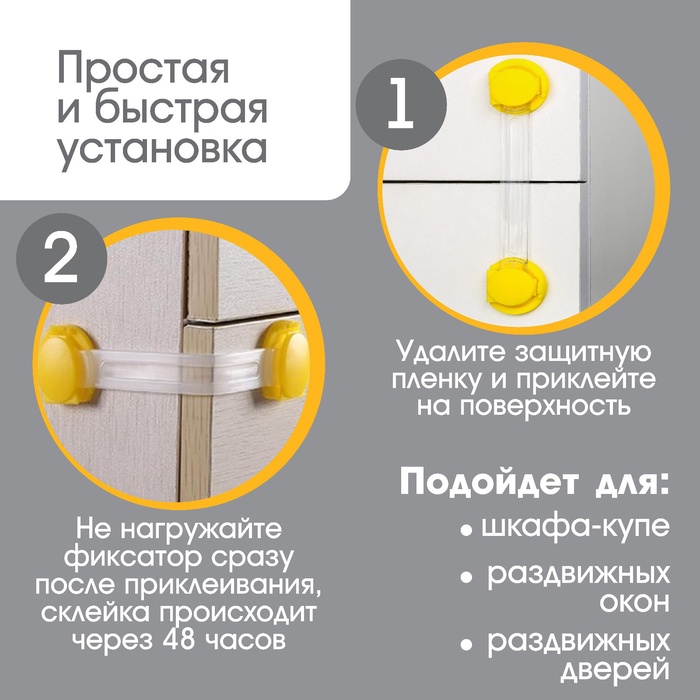 Набор блокираторов для дверей и ящиков Крошка Я, универсальные, гибкие, 2 шт., желтый — Характеристики