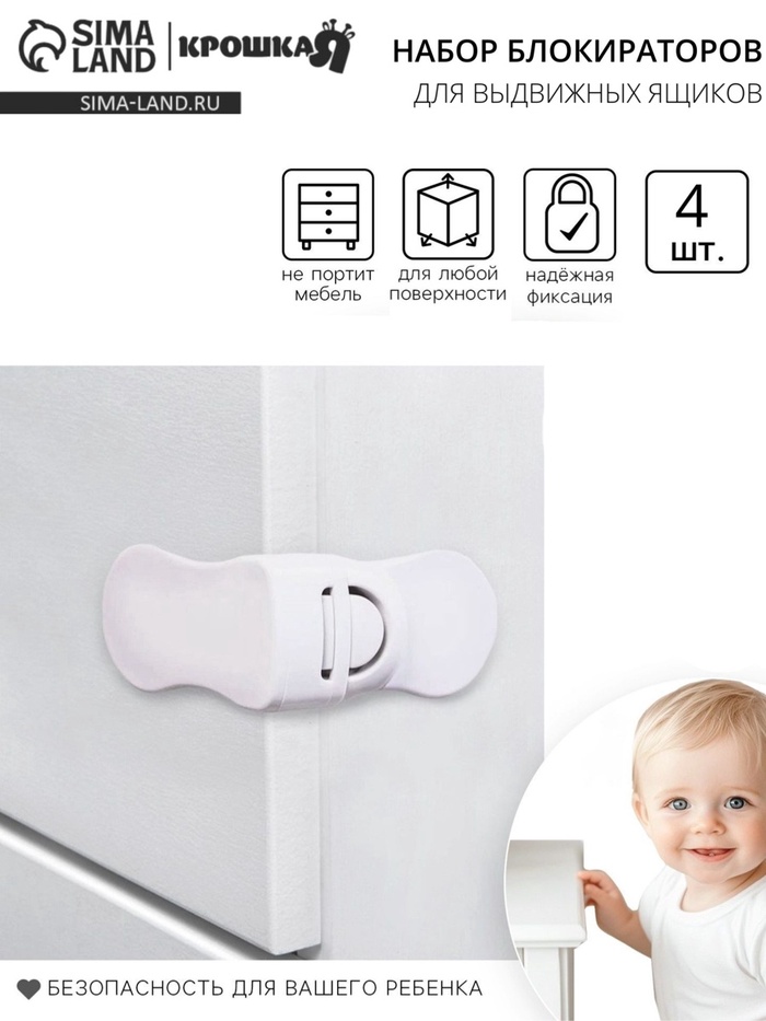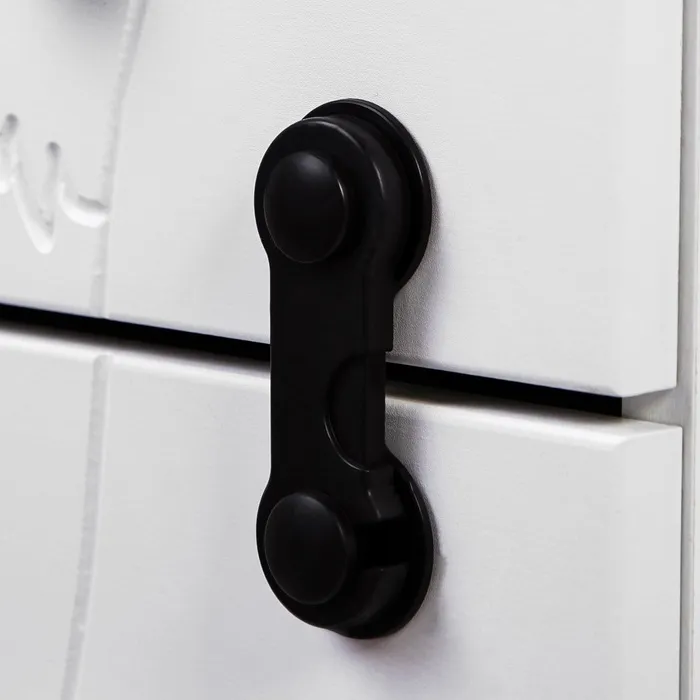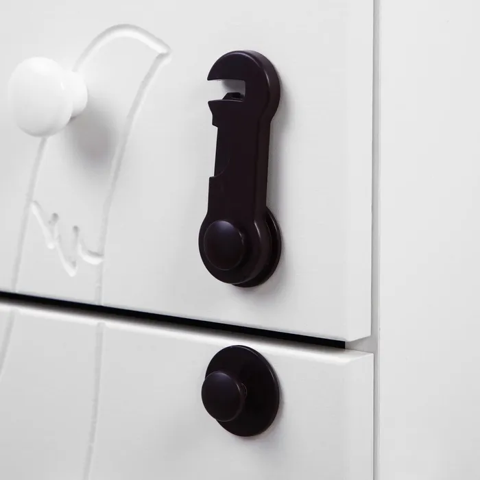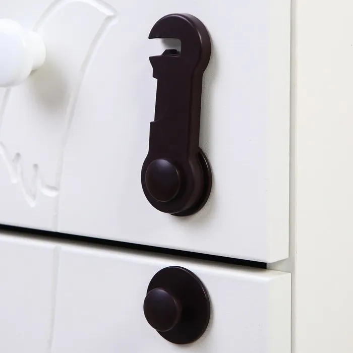 Блокиратор надёжно фиксирует створки шкафа и ящики стола, не позволяя малышу открыть их.Благодаря этому ребёнок не сможет прищемить свои пальчики и достать опасные для него предметы.Блокиратор отлично подойдёт для плоских поверхностей и будет гармонично смотреться в любом интерьере.