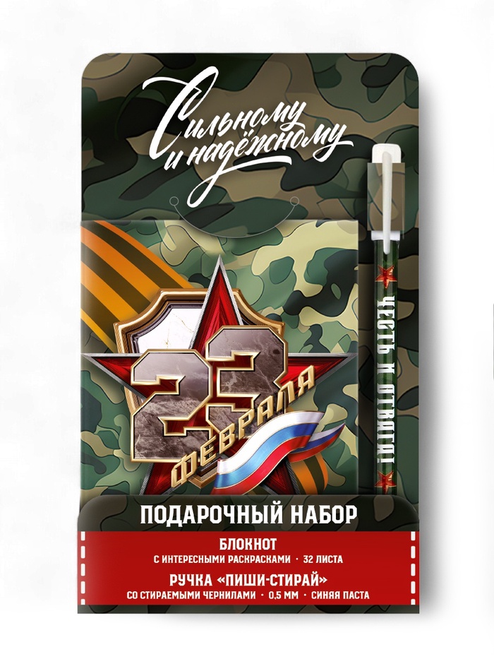 Набор блокнот А6, 32 листа и ручка пиши-стирай «С 23 февраля» хакки — Характеристики
