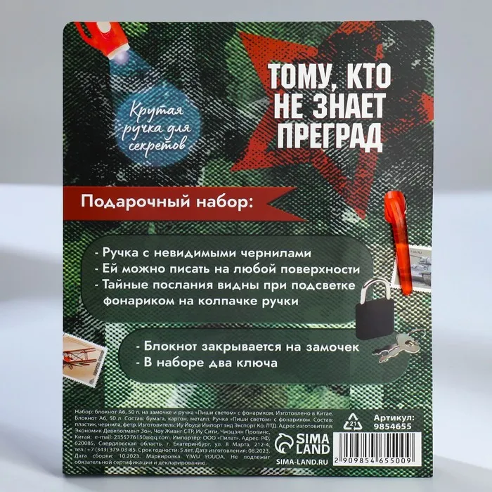 Набор блокнот А6, 50 л и ручка шариковая с невидимыми чернилами «23 февраля: С Праздником!» — Характеристики