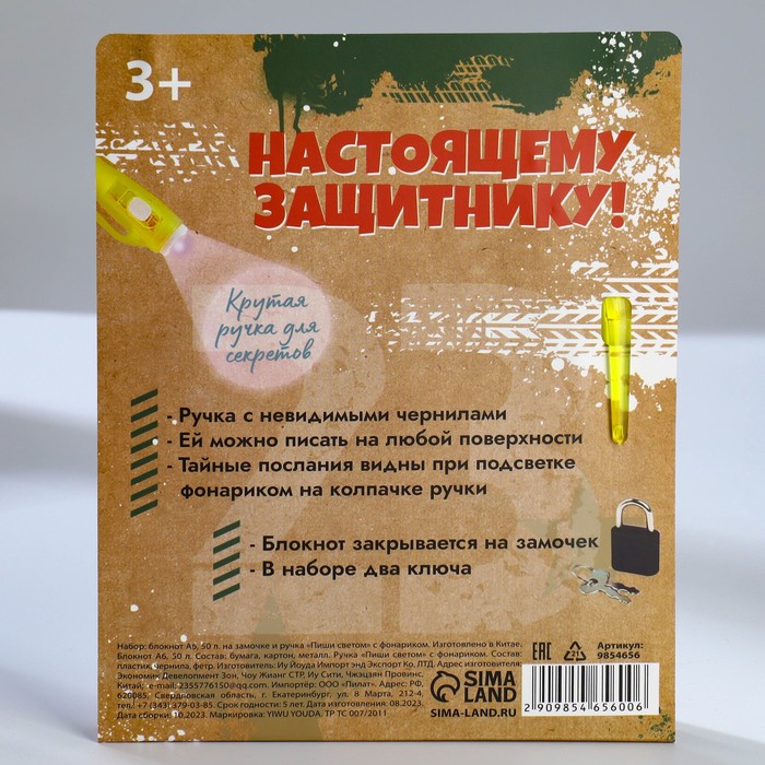 Набор блокнот А6, 50 л и ручка шариковая с невидимыми чернилами «23 февраля: Самому смелому!» — Характеристики