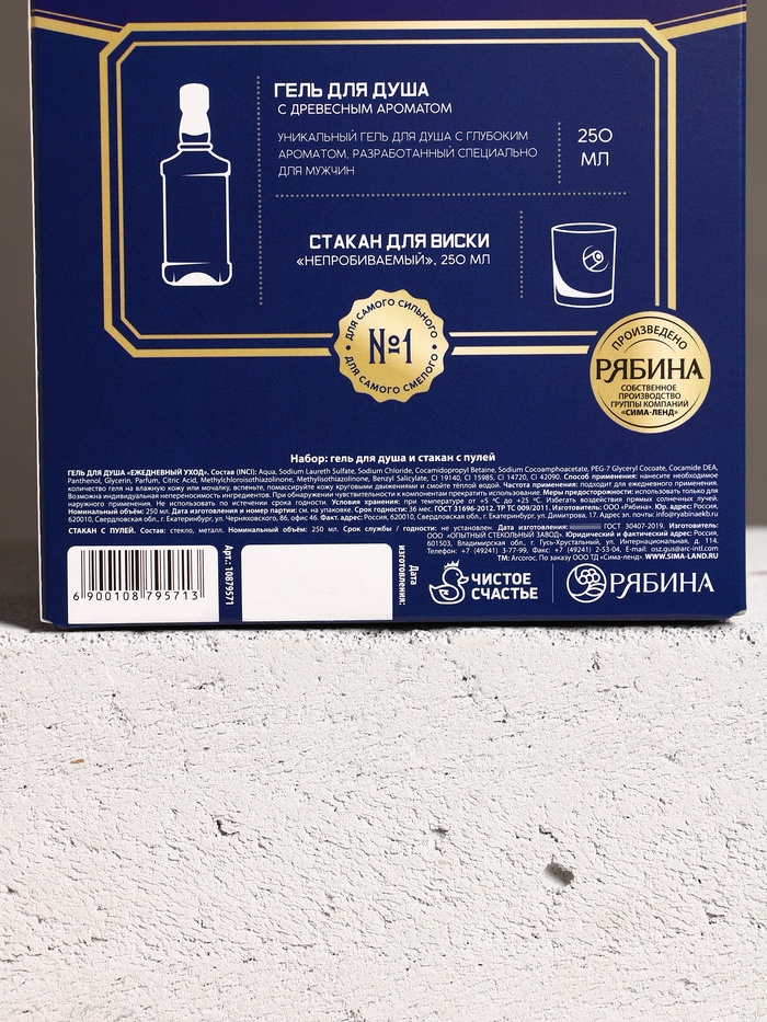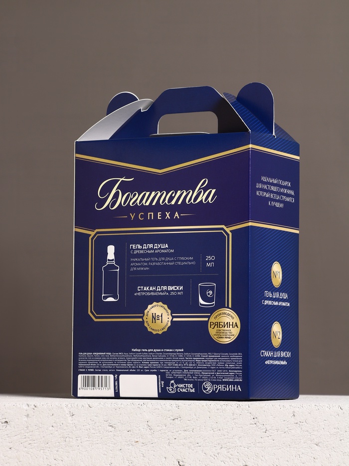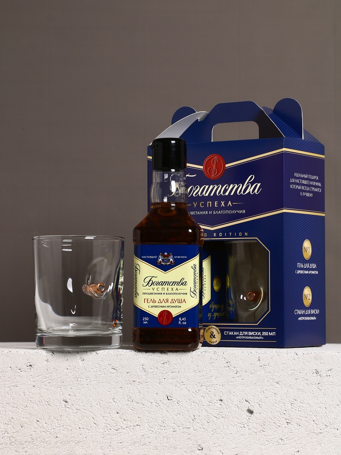Набор «Богатства»: гель для душа виски 250 мл и стакан с пулей, Чистое счастье — Характеристики