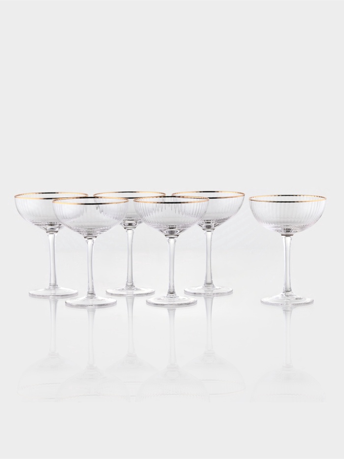Золотой ободок подчёркивает прозрачность или насыщенность напитка. Набор придаёт домашнему бару профессиональный вид и добавляет элегантности вечерам с друзьями.