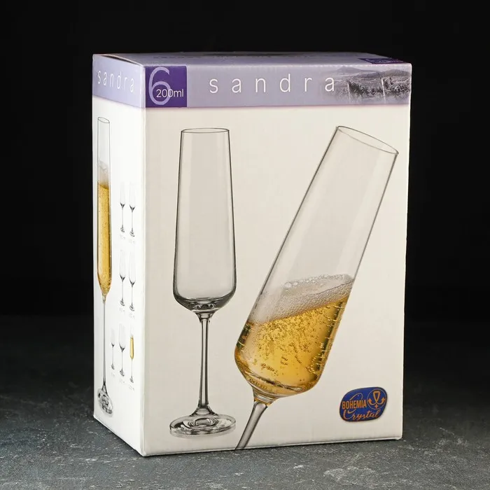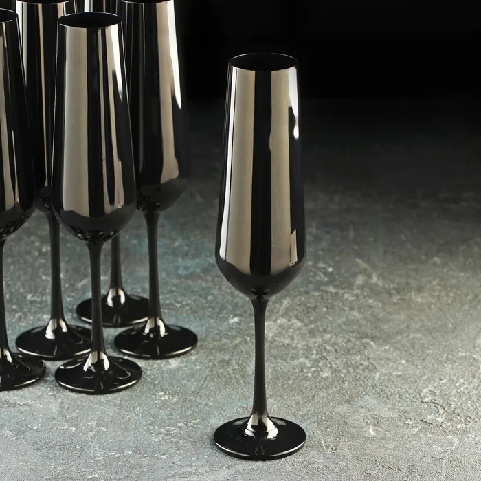 Набор бокалов для шампанского из хрустального стекла «Сандра», 200 мл, 6 шт, цвет чёрный — Характеристики