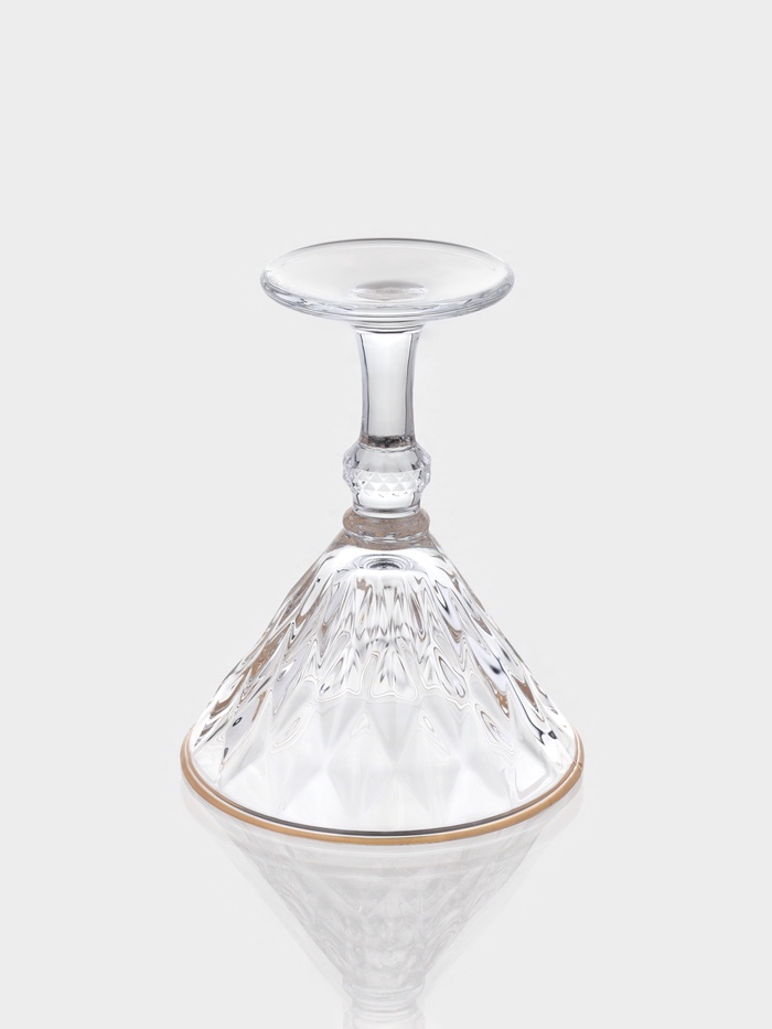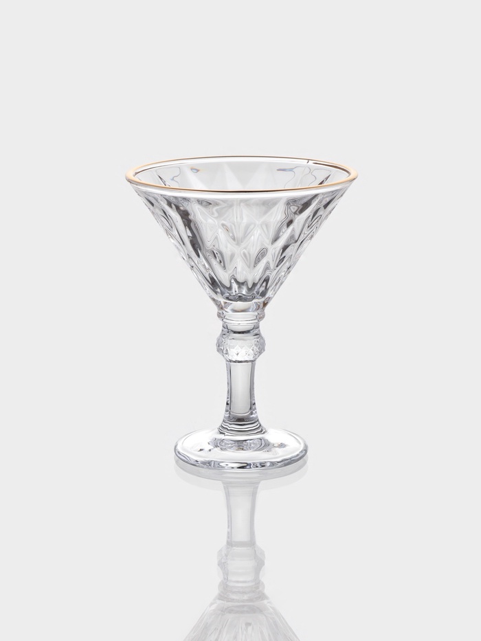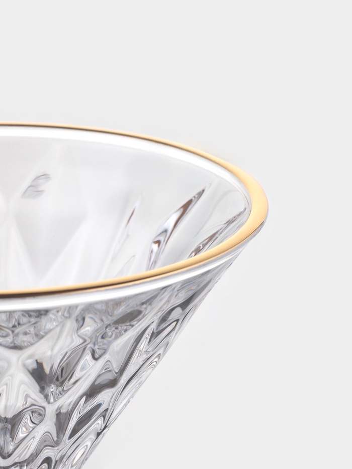 - Золотая отводка: тонкая золотая полоса по краю подчеркивает форму бокала, но не перегружает его.