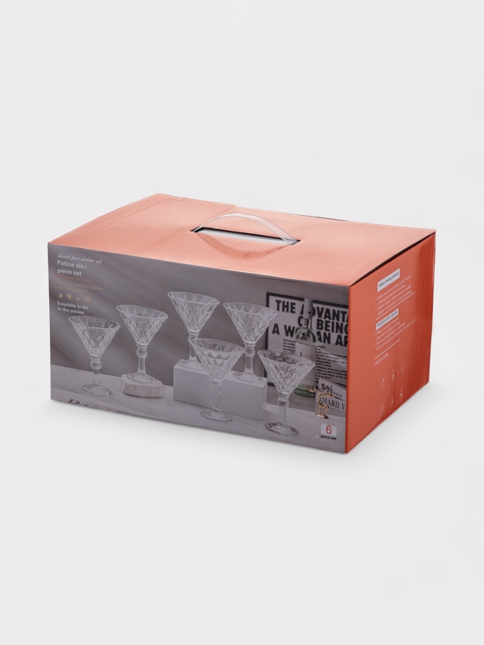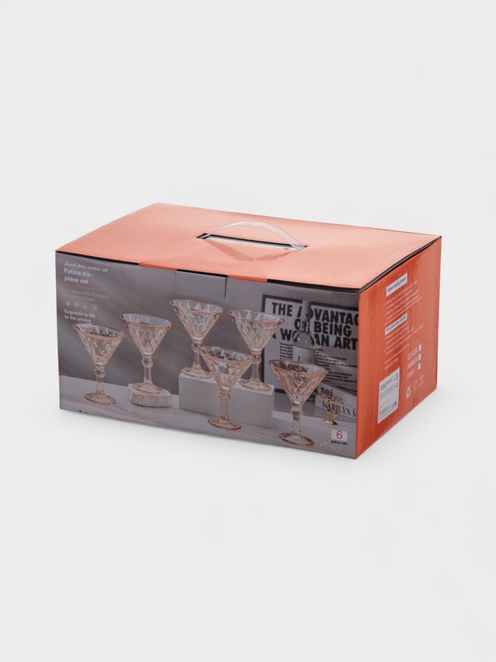 - Шесть бокалов: набор рассчитан на небольшую компанию, где каждый гость получает одинаково элегантную посуду.