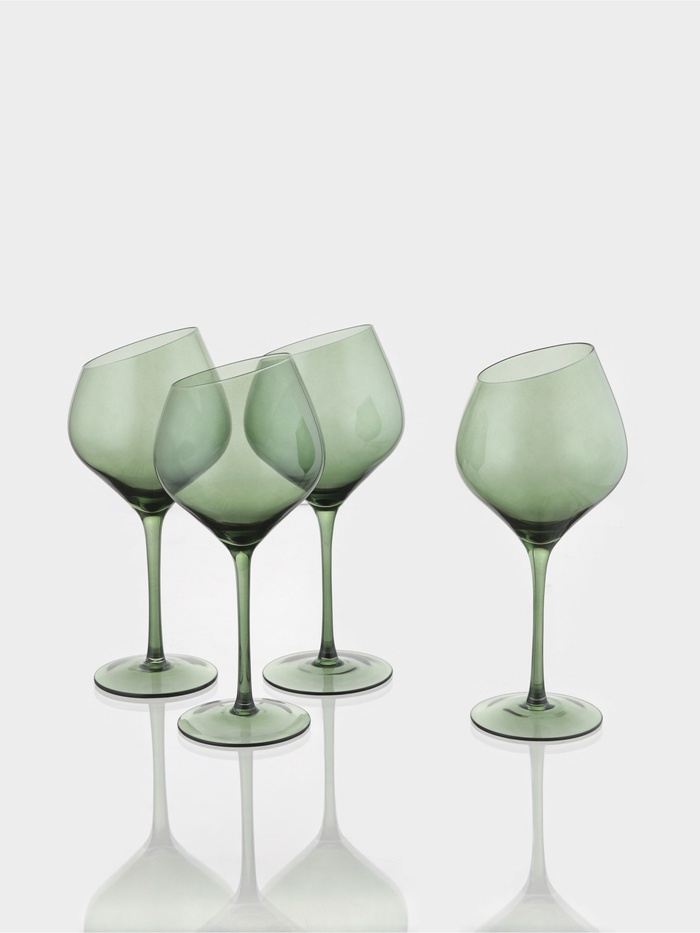 - Тонкое зеленое стекло: Бокалы имеют легкий зеленый оттенок — он добавляет сервировке индивидуальности, не отвлекая от содержимого. Цвет гармонирует с классической и современной посудой.