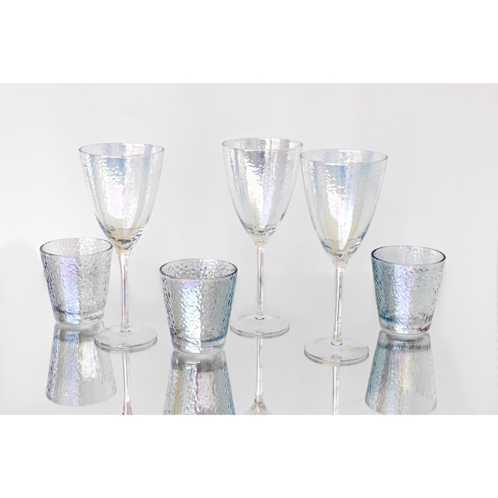 Набор винных бокалов —не декор, а инструмент уважения: к напитку, к гостю, к моменту. Перламутровая поверхность ловит свет мягко, без бликов, придавая каждому бокалу глубину и теплоту, как у натурального жемчуга. Никаких рисунков — только игра текстуры и оттенков, подчёркивающая цвет вина.