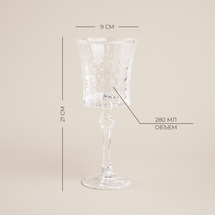 Набор бокалов для вина стеклянный SL Home «Винтаж», 280 мл, 9×21 см, цвет прозрачный — Характеристики