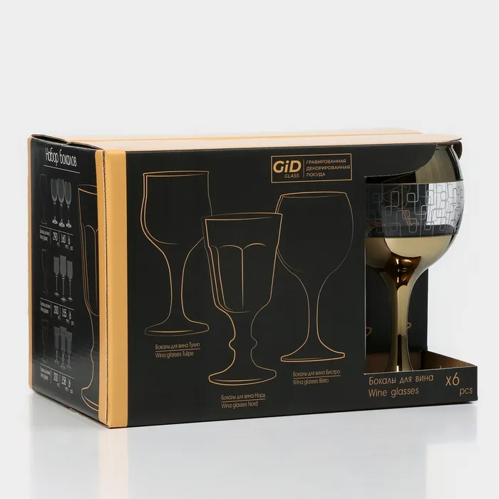 Набор бокалов «Геометрия», 290 мл, с гравировкой и напылением, 6 шт, цвет напыления золотой — Характеристики