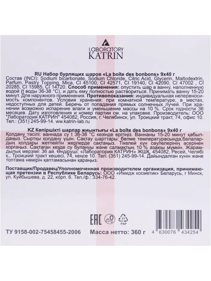 Набор бомбочек Candy bath bar "La boite des bonbons", 9*40 г — Характеристики