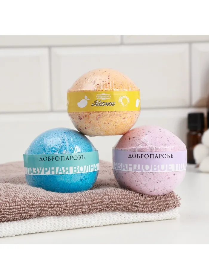 Набор бомбочек для ванн Добропаровъ "манго, лаванда, лазурная волна" 3 шт по 110 г — Характеристики