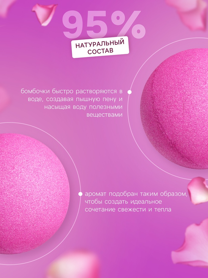 Бомбочки обеспечивают глубокое увлажнение и питание кожи, делая её мягкой, гладкой и эластичной. Эфирные масла также обладают антисептическими свойствами, помогая поддерживать здоровье кожи.