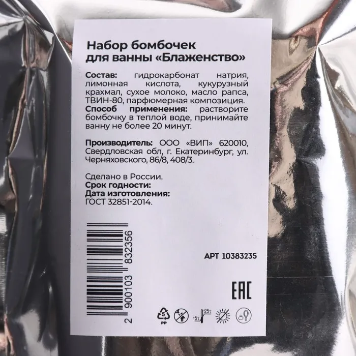 Набор бомбочек для ванны в "Ароматное блаженство" 5х40 г в пакете — Характеристики