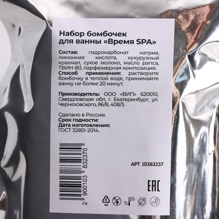 Набор бомбочек для ванны в "Время СПА" 5х40 г в пакете — Характеристики