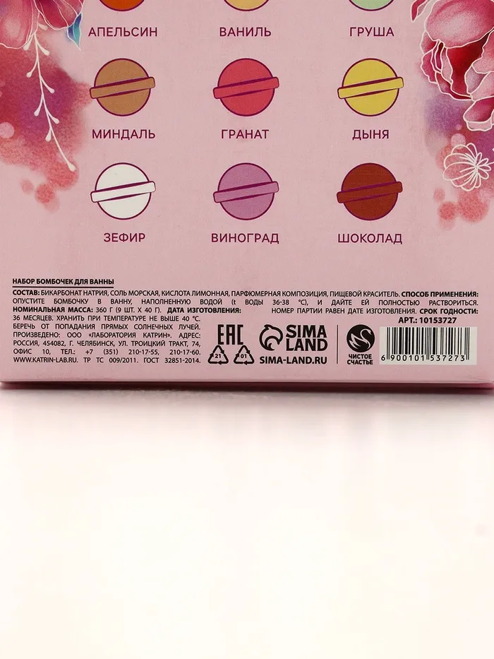 Набор бомбочки для ванны ЧИСТОЕ СЧАСТЬЕ «8 Марта», 9х40 г — Характеристики