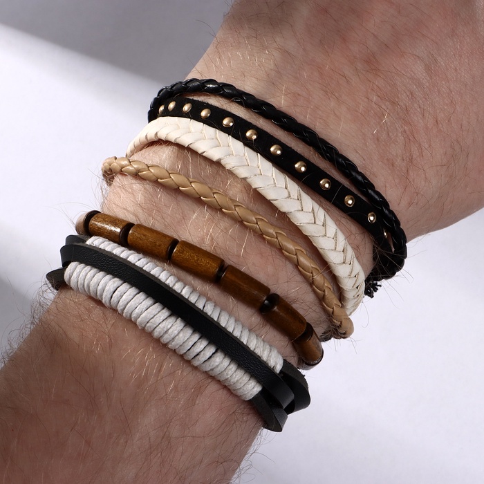 Разноцветные браслеты с затяжками и без застежек легко адаптируются под любой образ — от повседневного до праздничного. Вставки из металла и дерева добавляют изделиям особого стиля и текстурного разнообразия, делая каждое украшение неповторимым. Такой набор станет универсальным подарком для любого взрослого, ценящего оригинальность и качество.