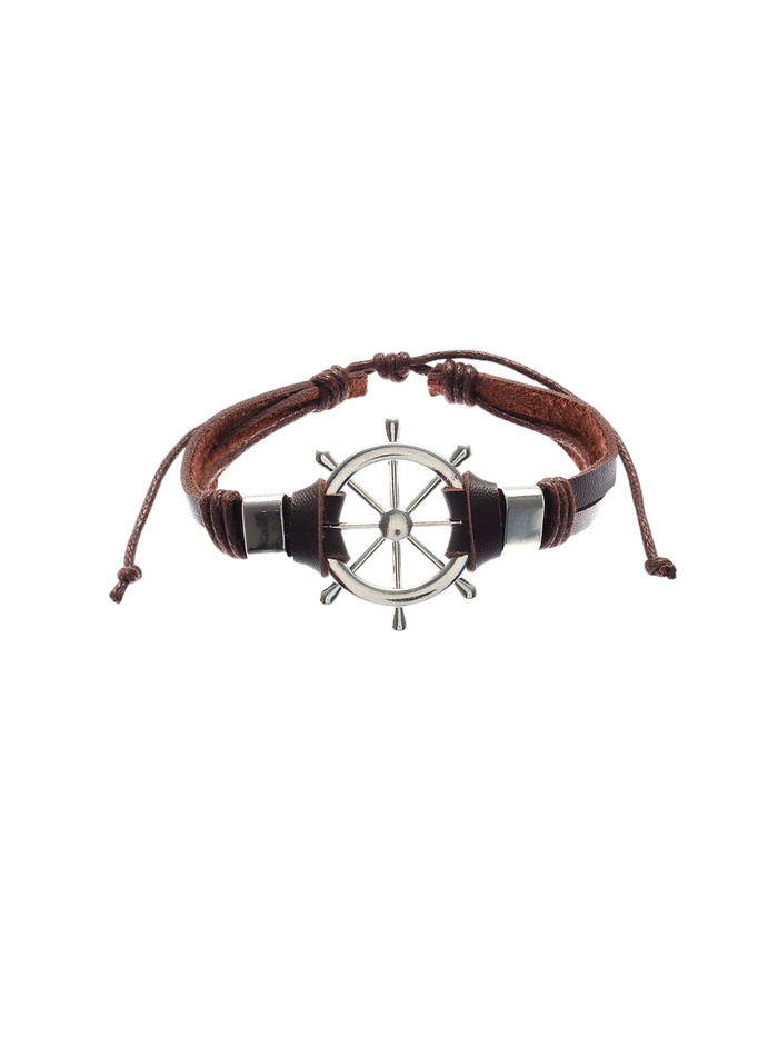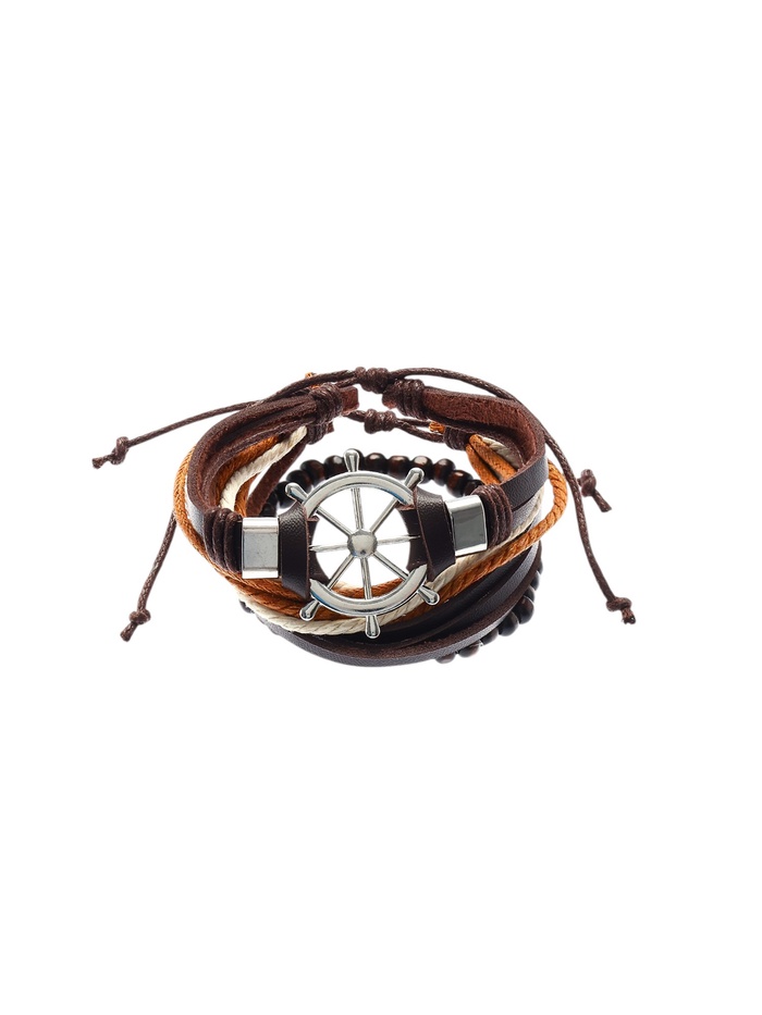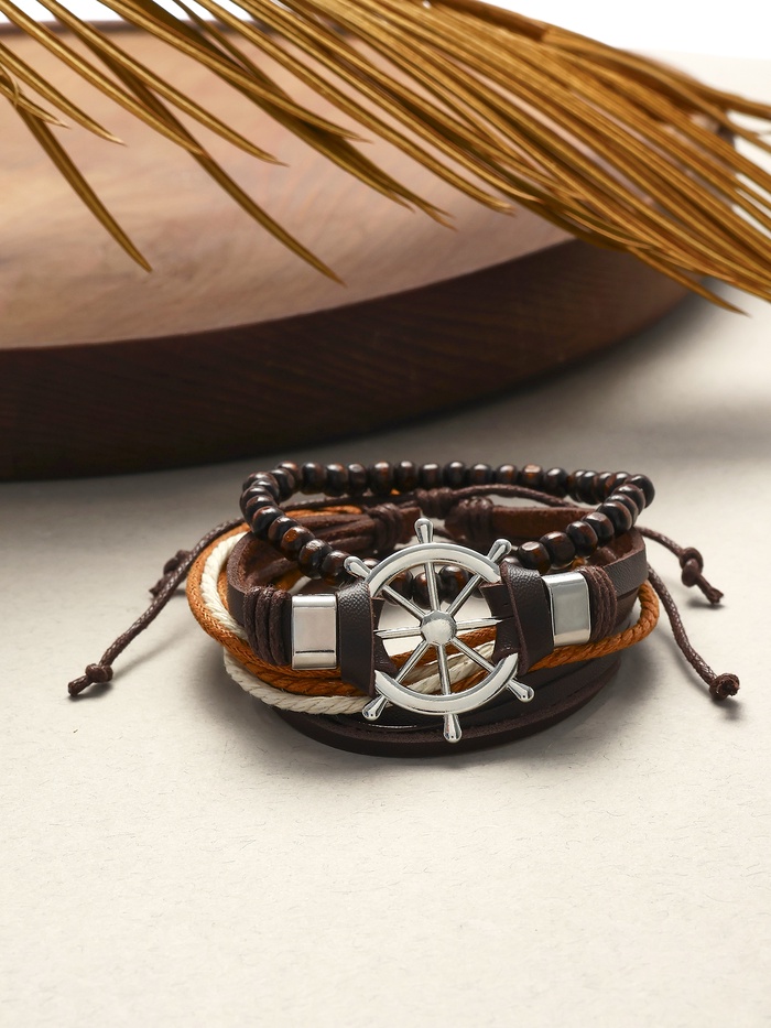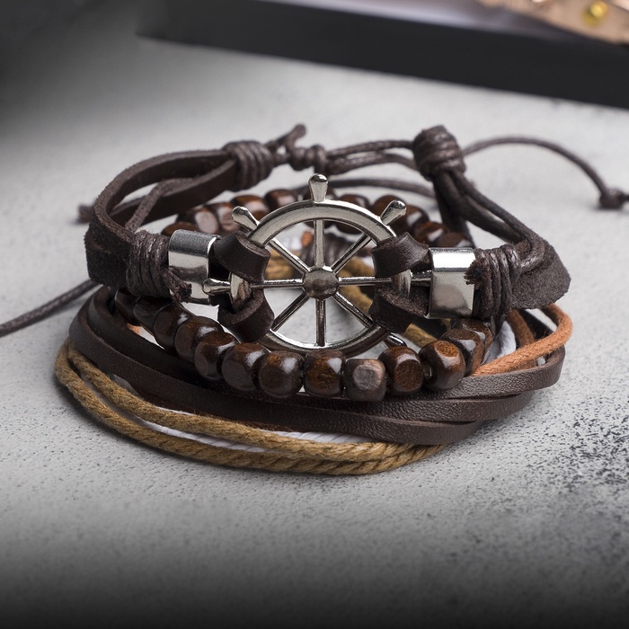 Набор браслетов кожаных «Мачта и штурвал», 3 шт., бежево-коричневый в серебре, d=7.5 см — Характеристики