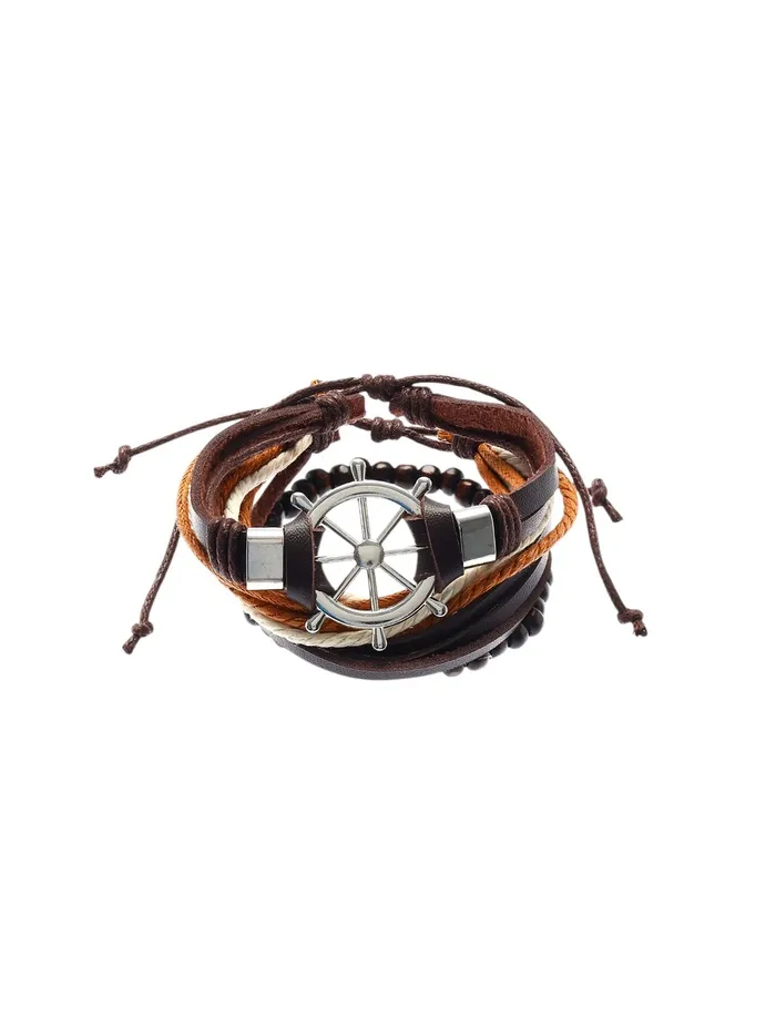 Этот набор кожаных браслетов с морской тематикой объединяет в себе стиль и символизм, создавая уникальный аксессуар для мужчин, ценящих качество и оригинальность. Три браслета из натуральной кожи в бежево-коричневых оттенках с серебристыми вставками позволяют создавать разнообразные образы — от повседневных до более выразительных и насыщенных деталями.