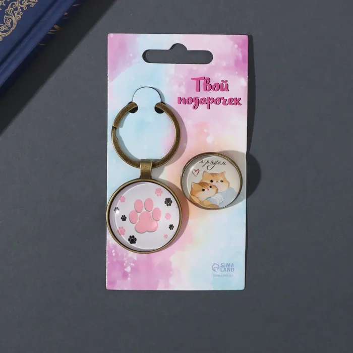 Набор брелок и значок "Котики. Я рядом" 6х11 см — Характеристики