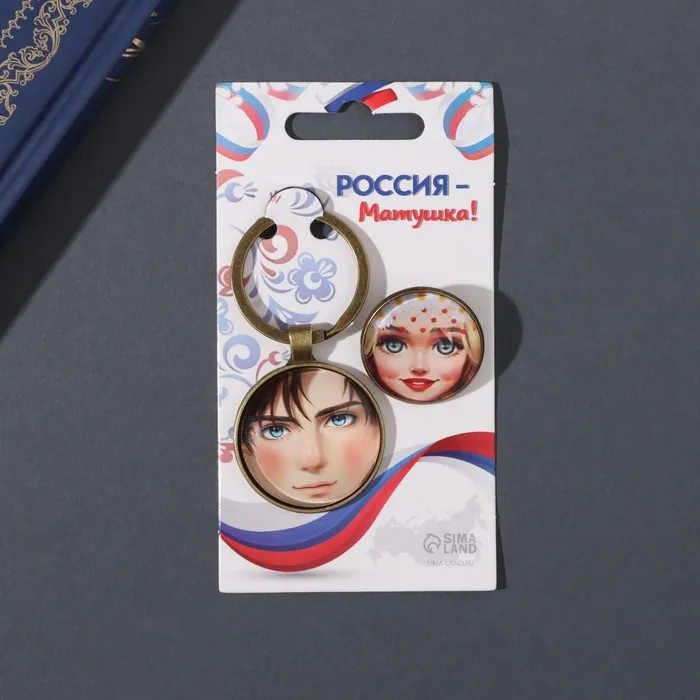 Набор брелок и значок "Русский парень и девушка" 6х11 см — Характеристики