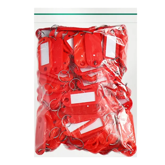 Брелоки для ключей с информационным окном и бумажной вставкой для пометок. Размер брелока 52 х 23 мм, размер окна 36 х 18мм – предназначен для нанесения маркировки. Защитная пленка размером 18 х 36 мм из прозрачного полиэтилена служит для предохранения бумажной вкладки. Материал - мягкий пластик. Упаковка по 100 штук, цвет - красный. Корпус изготовлен из гибкого пластика, что увеличивает срок службы брелока для ключей.