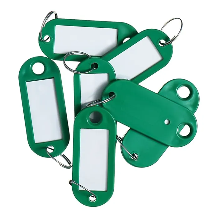 Брелоки для ключей с информационным окном и бумажной вставкой для пометок. Размер брелока 52 х 23 мм, размер окна 36 х 18мм – предназначен для нанесения маркировки. Защитная пленка размером 18 х 36 мм из прозрачного полиэтилена служит для предохранения бумажной вкладки. Материал - мягкий пластик. Упаковка по 50 штук, цвет - зеленый. Корпус изготовлен из гибкого пластика, что увеличивает срок службы брелока для ключей.