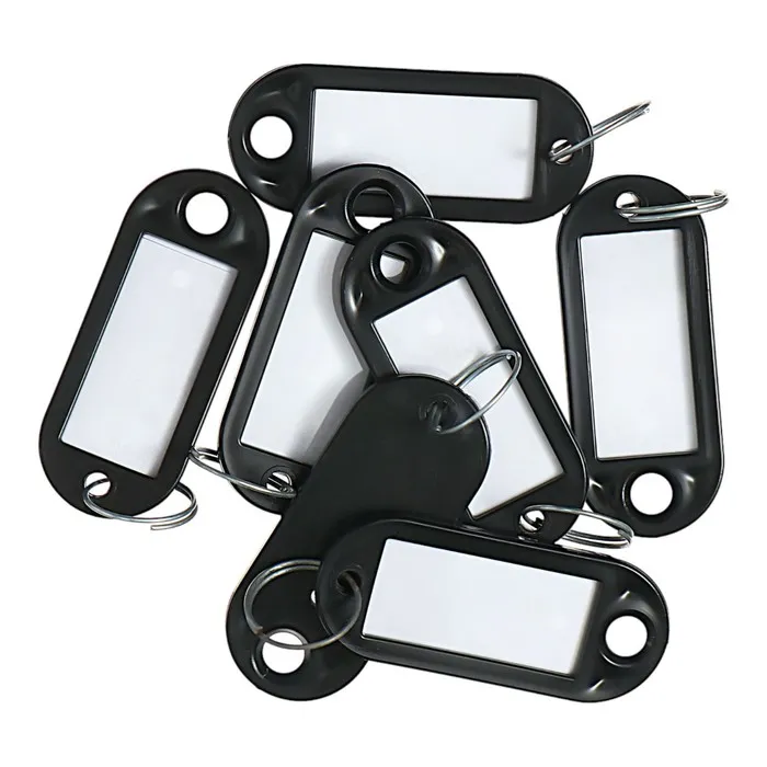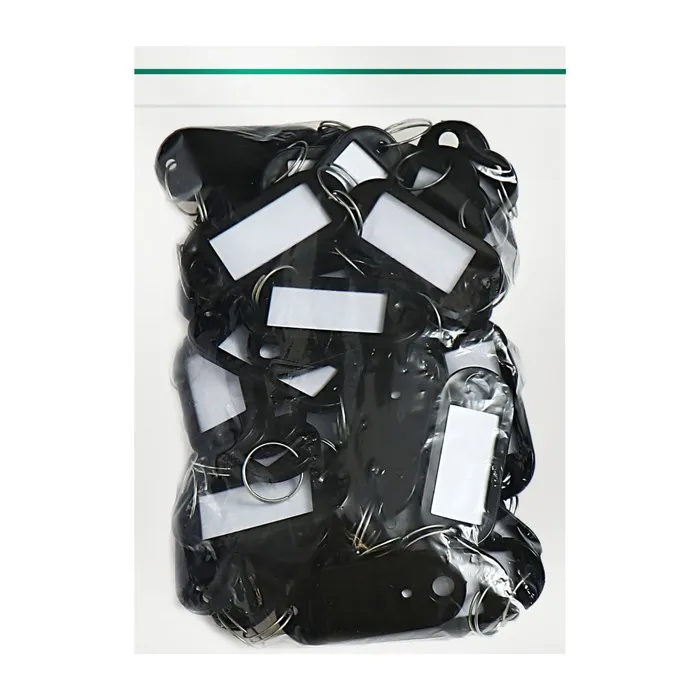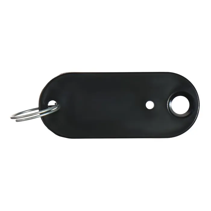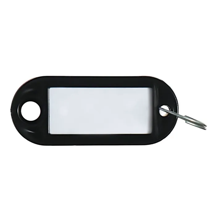 Брелоки для ключей с информационным окном и бумажной вставкой для пометок. Размер брелока 52 х 23 мм, размер окна 36 х 18мм – предназначен для нанесения маркировки. Защитная пленка размером 18 х 36 мм из прозрачного полиэтилена служит для предохранения бумажной вкладки. Материал - мягкий пластик. Упаковка по 50 штук, цвет - черный. Корпус изготовлен из гибкого пластика, что увеличивает срок службы брелока для ключей.