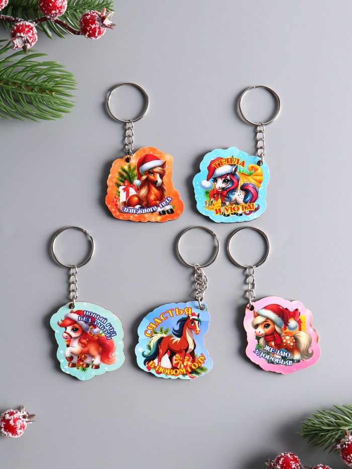Набор брелоков для ключей на кольце «Новый год. Лошади», 5 шт., 4.5 см — Характеристики