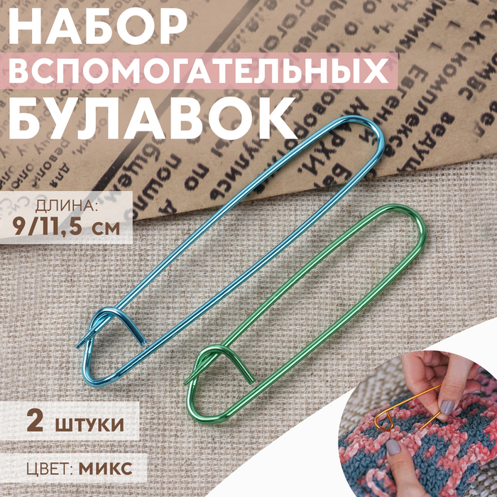 Длинный хвостик легко вдевается в петлю или столбик, затем фиксируется в замке, не деформирует и не растягивает вязку. Разными цветами удобно помечать участки в одном изделии: выделить спинку, пройму, полочку. Если допущена ошибка, можно за пару секунд снять и переставить булавку на другое место.