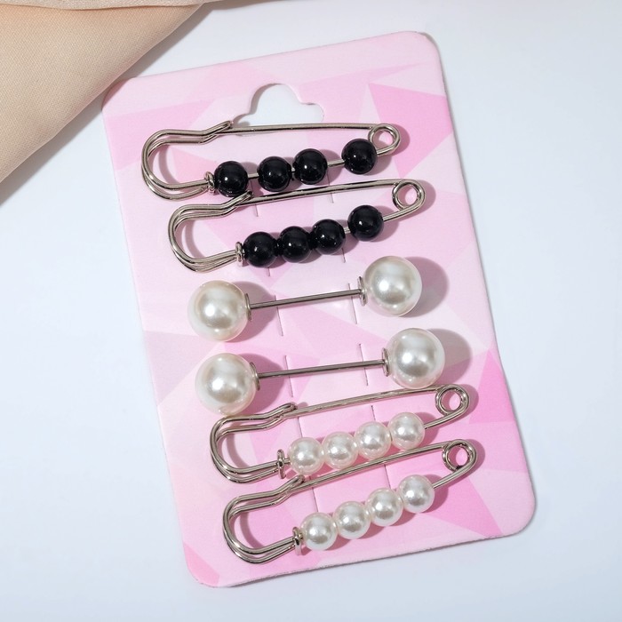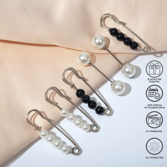 Набор булавок (6 шт.) «Жемчужины», 3,5 см, цвет чёрно-белый в серебре — Характеристики