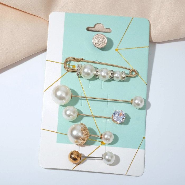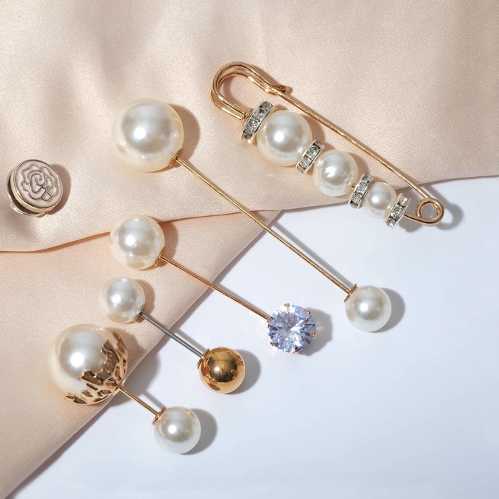 Набор булавок (6 шт.) «Жемчужное ассорти», 6.5 см, белый в золоте — Характеристики