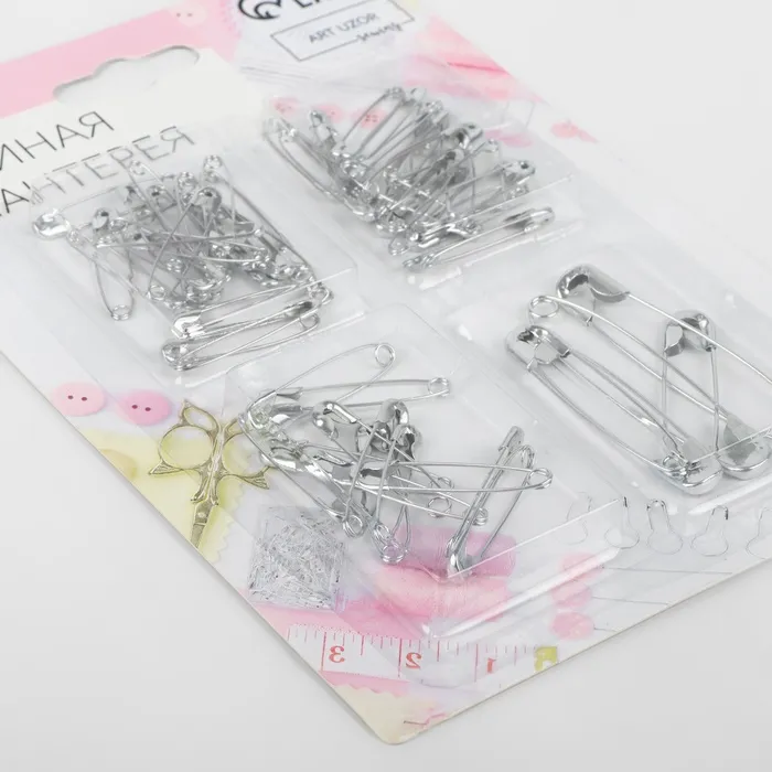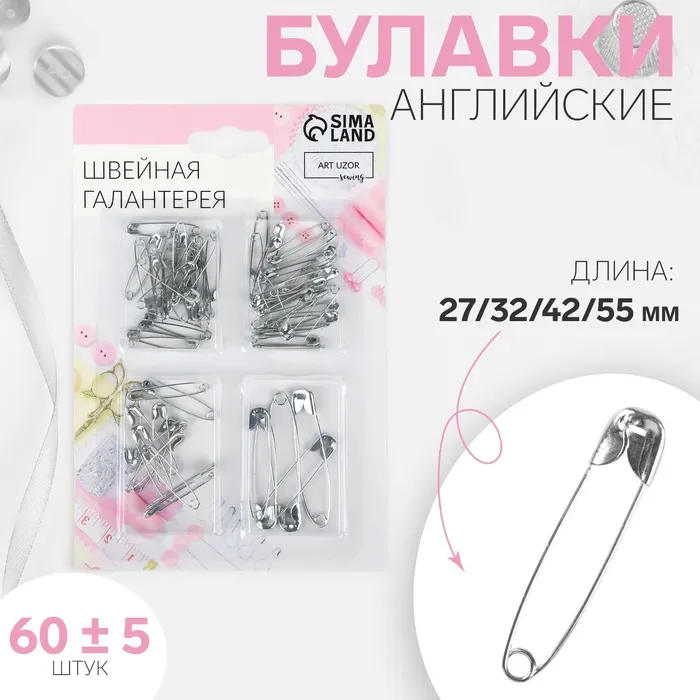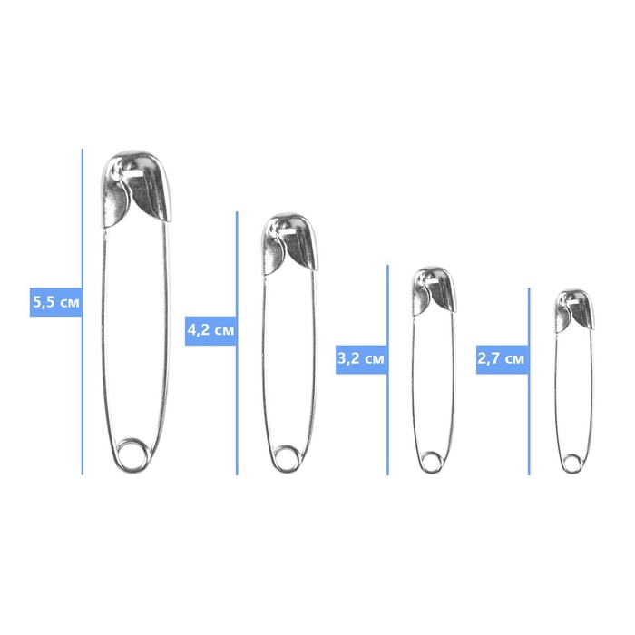 Набор булавок английских, 27 / 32 / 42 / 55 мм, 60±5 шт., цвет серебряный — Характеристики