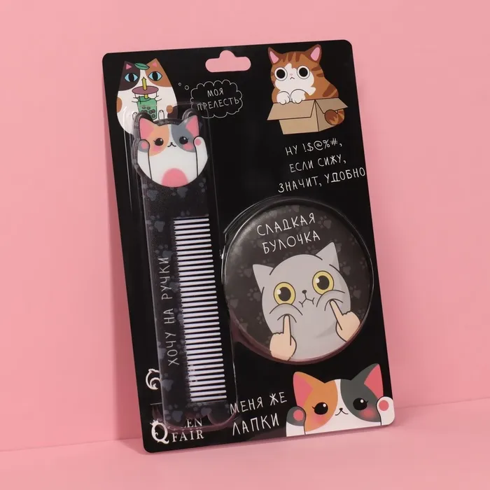 Подарочный набор станет прекрасным сюрпризом на любой праздник. Аксессуары для ухода за собой — это приятный и необходимый подарок для любой девушки. Набор с расчёской и маленьким зеркальцем подарит хорошее настроение и останется приятным напоминанием о вас. Порадуйте своих близких и родных незаменимыми косметическими аксессуарами с уникальным дизайном.