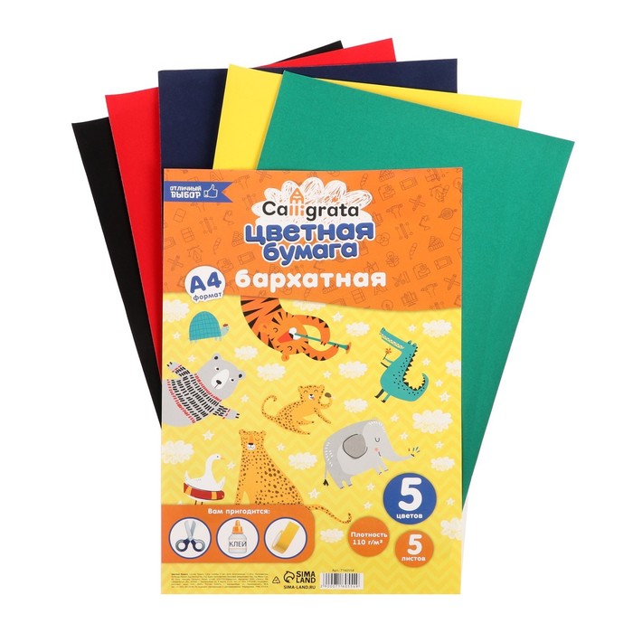 Набор бумаги бархатной А4, 5 листов, 5 цветов, плотность 110г/м2 — Характеристики