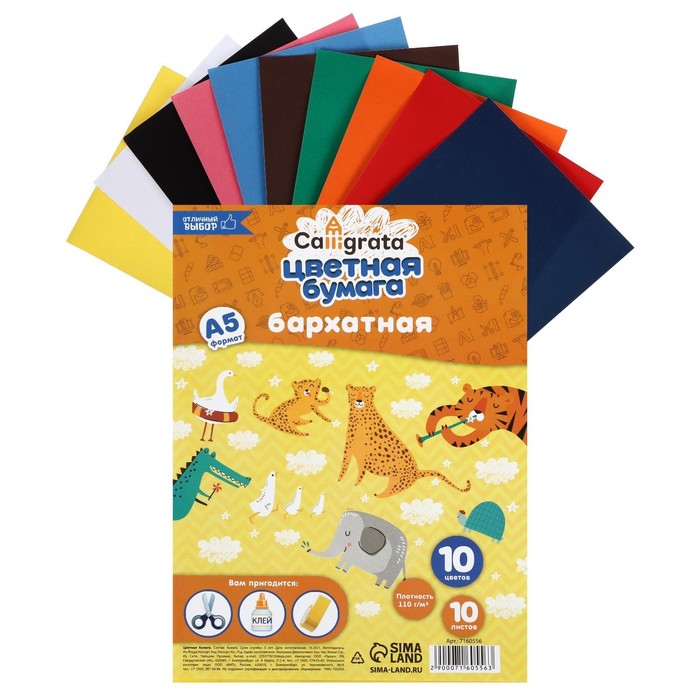 Набор бумаги бархатной А5, 10 листов, 10 цветов, плотность 110г/м2 — Характеристики