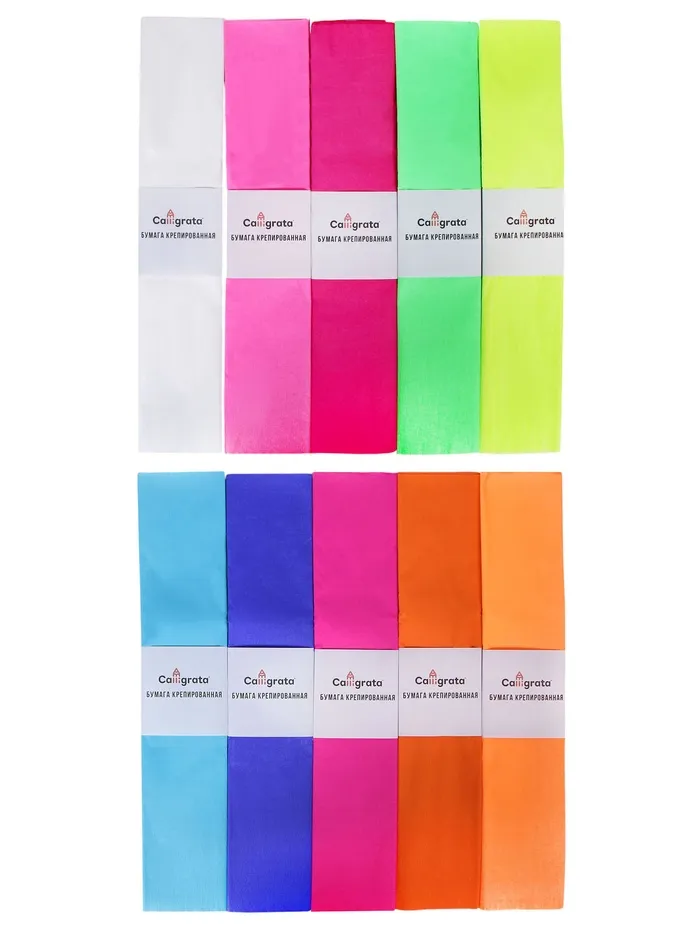 Набор бумаги крепированной "Неон", рулон 10 штук/10 цветов, 50 х 200 см, 30 г/м2 — Характеристики